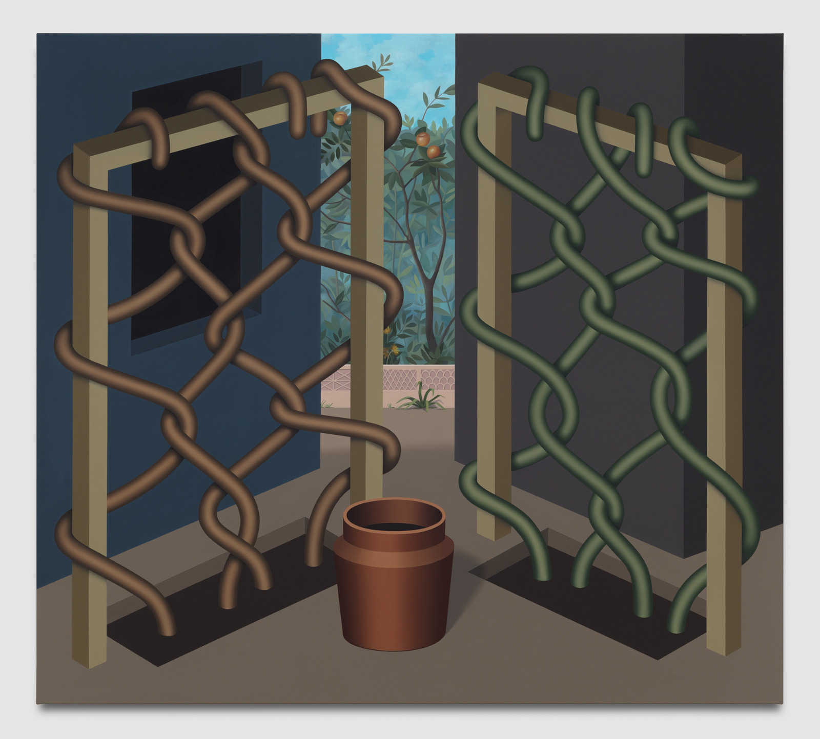 Shaffer sees these imaginary domestic spaces and gardens as theoretical explorations of architecture, light, time, control and color, and as homages to the spaces women build, create and occupy.
