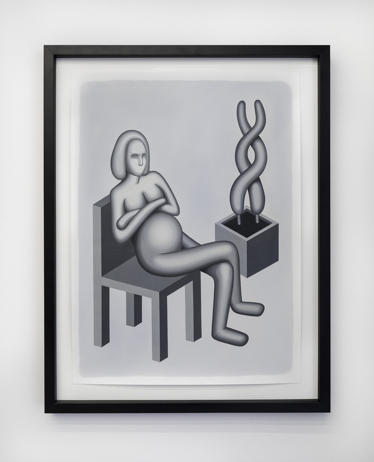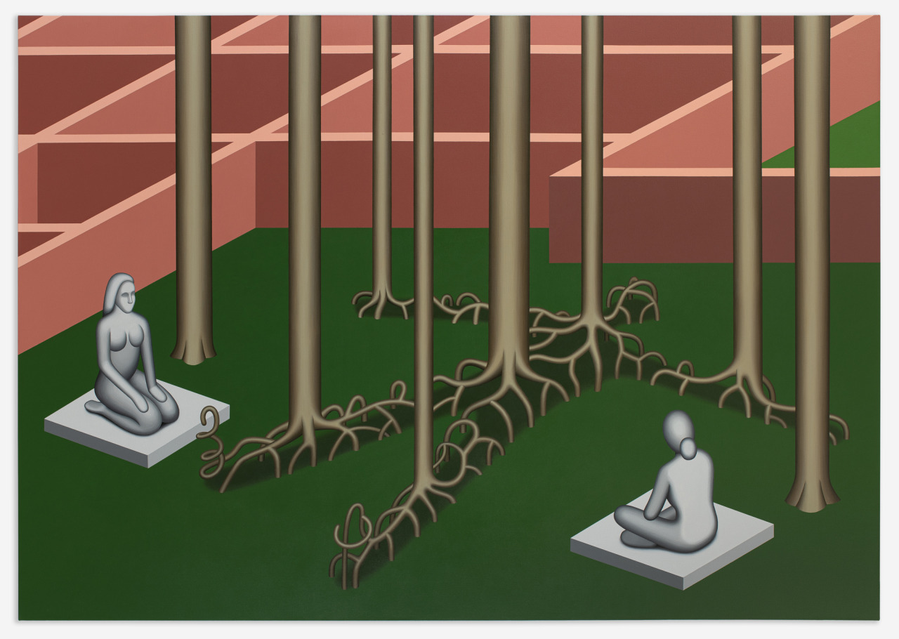 Shaffer’s paintings and drawings explore the uncanny worlds that arise between idealized forms and environments and the frames through which we experience them. In the worlds she creates, day and night sometimes exist at the same time, perspective falters and the only figures who appear are stone statues of solid women.